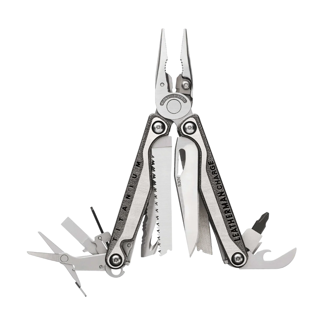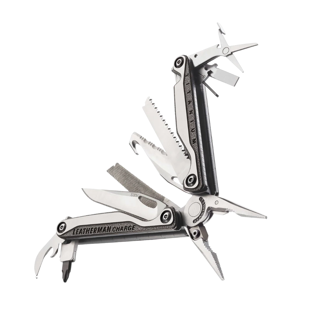 The Charge® + TTi represents the pinnacle of multi-tool engineering, designed for professionals who demand the highest quality materials and uncompromising versatility. This model features lightweight, high-strength titanium handle scales that provide a superior grip and exceptional durability in extreme environments. The Charge® + TTi is equipped with a primary blade made of S30V stainless steel, known for its incredible edge retention and corrosion resistance. Every detail is optimized for efficiency, from the all-locking blades that ensure safety during heavy use to the outside-accessible features that allow for rapid deployment with one hand. Whether you are performing complex field repairs, emergency maintenance, or navigating survival situations, this multi-tool serves as a comprehensive portable workshop that fits comfortably in your pocket or sheath.