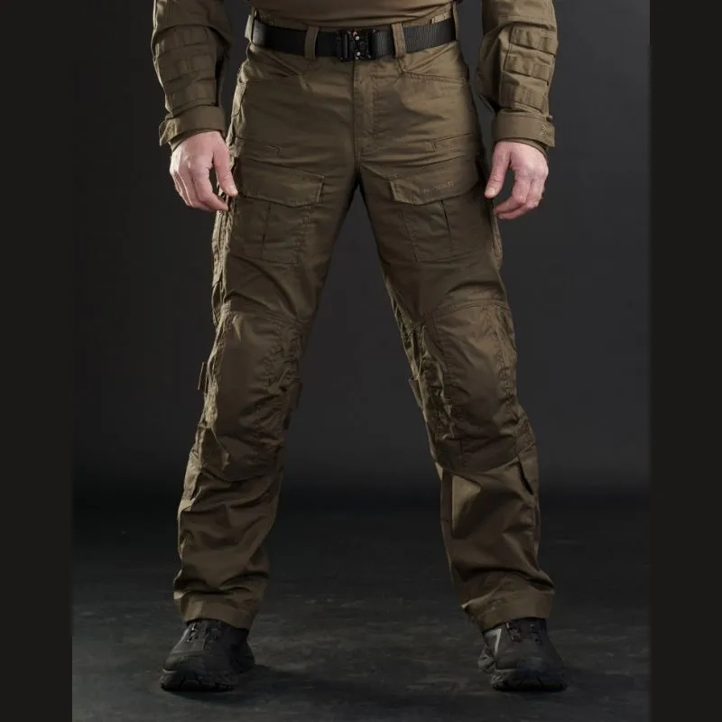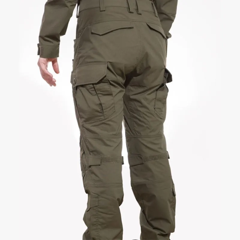 Constructed from a 225gsm rip-stop fabric made of 65% polyester and 35% cotton, the material features a Teflon™ treatment by DuPont® to resist stains and light moisture. The 2-way mechanical stretch and diamond crotch design enhance freedom of movement, while reinforced Cordura® knee patches improve durability in high-wear areas. External knee pad pockets with adjustable height allow for customized comfort and support.