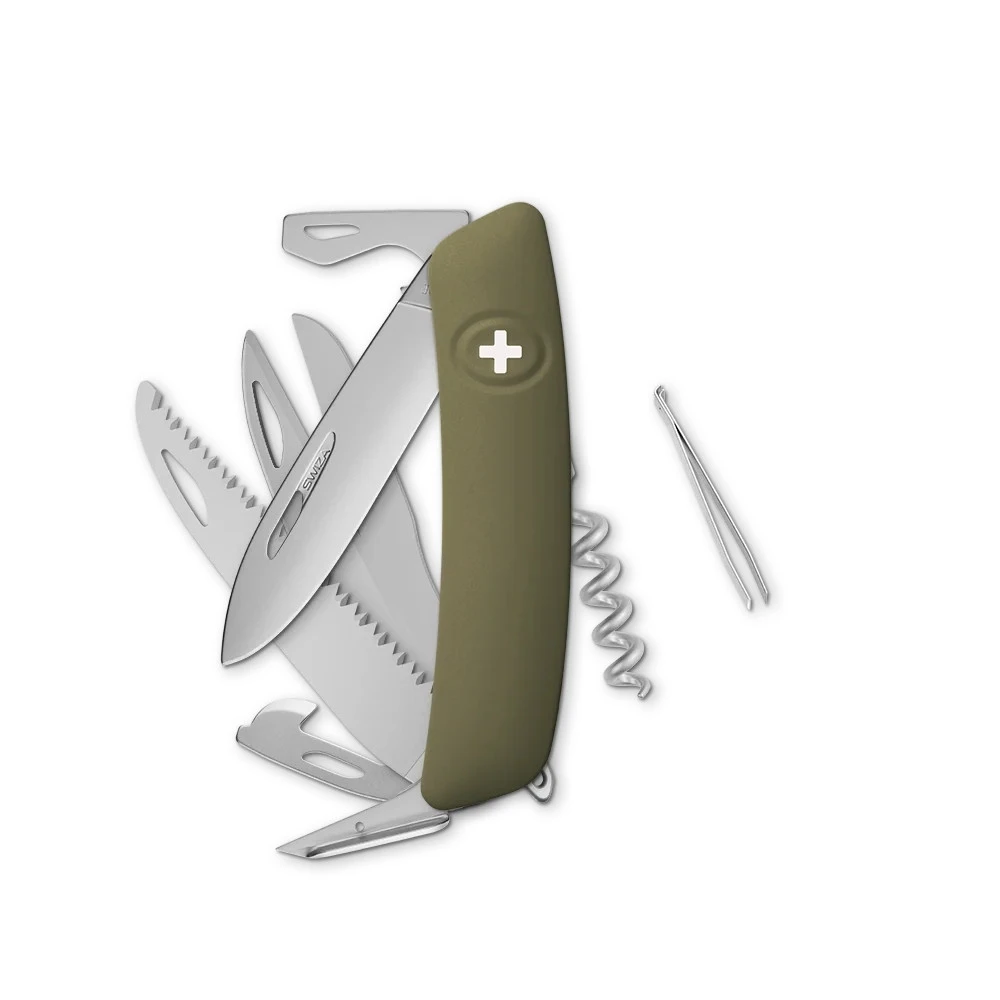 The Swiza D09 R AM Multi Knife is an extra-large Swiss-made multi-tool engineered for enhanced outdoor functionality and everyday reliability. Designed with an ergonomic Allmatt handle, it ensures a secure grip and comfortable handling during extended use.