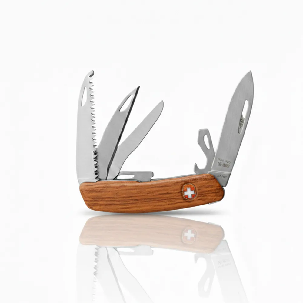The Swiza LE CHATILLON is a masterpiece of Swiss craftsmanship, featuring authentic Oak Wood scales—a majestic tree symbolizing nobility and wisdom. This sophisticated multi-tool is designed for the modern explorer who values both aesthetics and unique functionality. It stands out with two specialized features: a one-handed opening serrated blade for rapid deployment and a revolutionary integrated tick tool developed by experts for outdoor safety. Combining 12 essential functions with the warm, natural grip of oak, the Le Chatillon is more than just a pocket knife; it is a symbol of precision and outdoor preparedness.