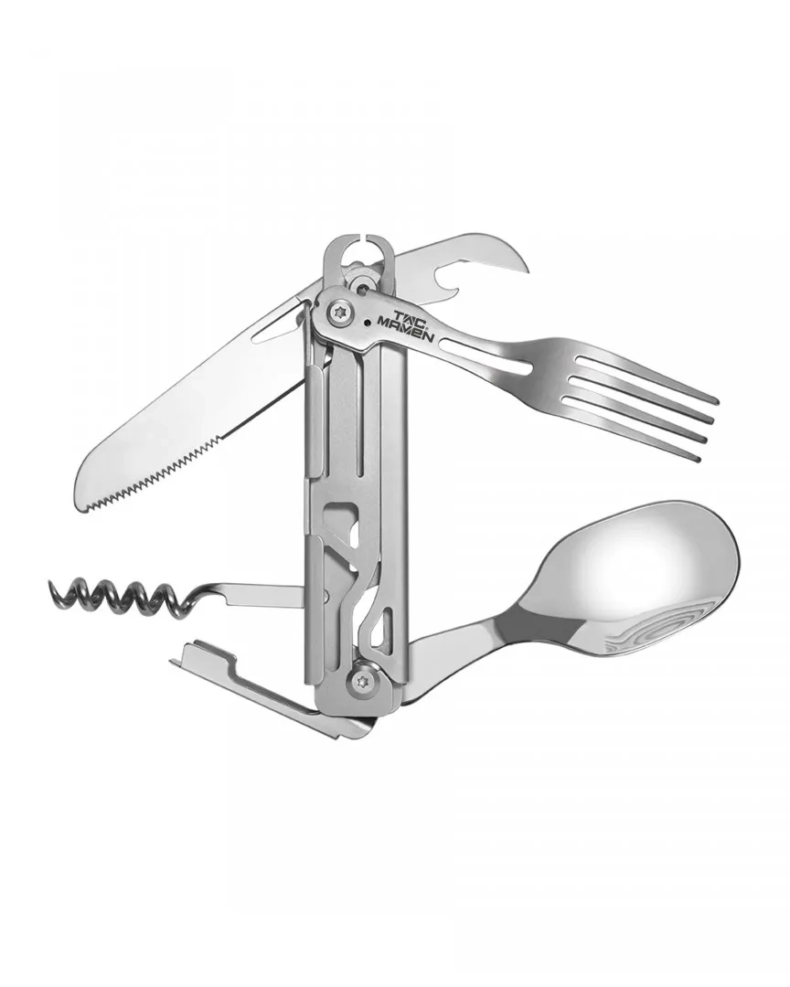 6-in-1 Essential Toolkit: Features a dedicated spoon, fork, knife blade, bottle opener, can opener, and corkscrew.